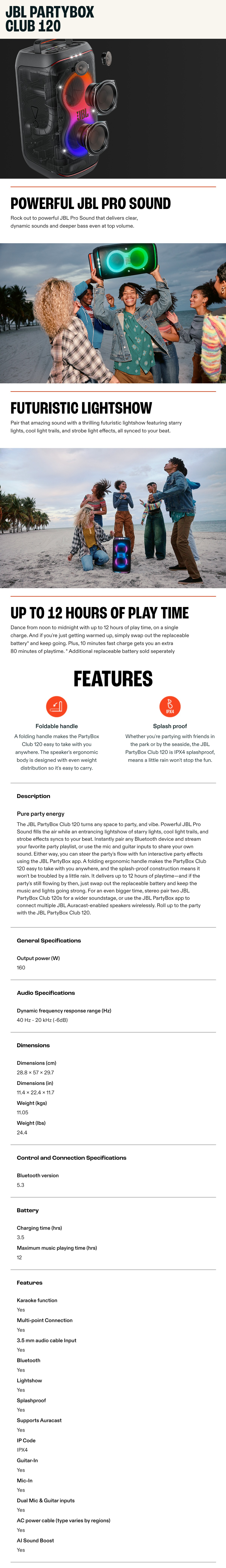 Dance from noon to midnight with up to 12 hours of play time, on a single charge. And if you’re just getting warmed up, simply swap out the replaceable battery* and keep going. Plus, 10 minutes fast charge gets you an extra 80 minutes of playtime. * Additional replaceable battery sold seperately